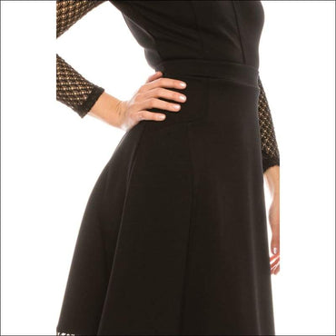 Crew Neck Long Sleeves Zipper Back Lace & Textured Knit Dress. Since this below the knee length dress cuts off your legs visually midway, pair it with your favorite high heels to keep your legs looking long and lean. Hurry and get yours!