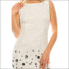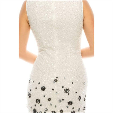 Ivory Sequined Evening Sheath Dress with Black Floral