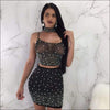 Backless Bandage Top And Bodycon Skirt Three Pieces Sets Sexy See-through Mesh Diamonds