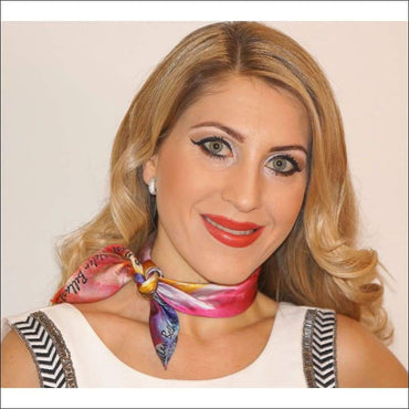- Silk scarf printed with the original artwork from artist Helen Bellart