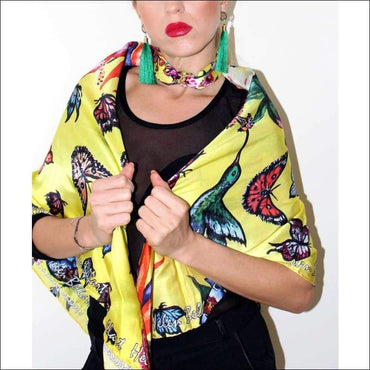 - Silk scarf printed with the original artwork from artist Helen Bellart
