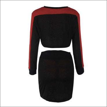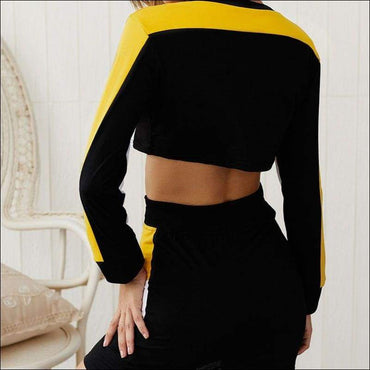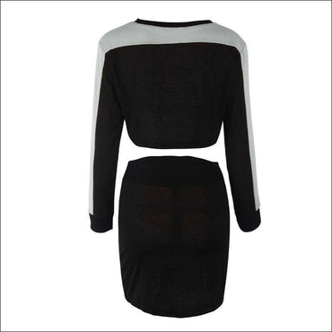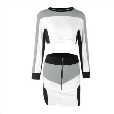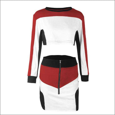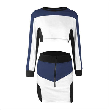 Casual Contrast Long-sleeve Crop Top Zipper Design Skirt Sporty Set