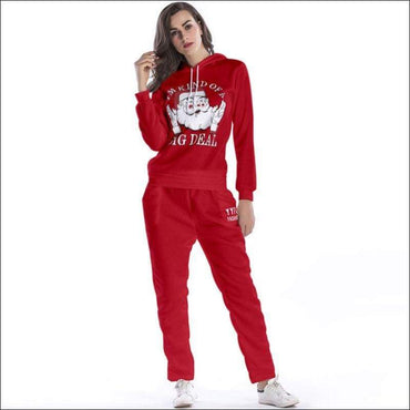 Casual Outdoor Sportswear Santa Claus Print Hoodies And Sweatpants Set