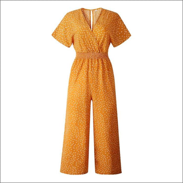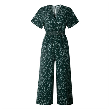 Casual Polka Dot V-neck Short-sleeve Defined Waist