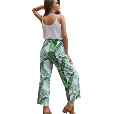 Casual Spaghetti Strap Camisole And Plant Print Tenths Pants Set