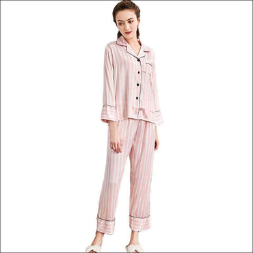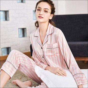 Classic Stripe Print Silk-like Pajamas Set