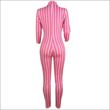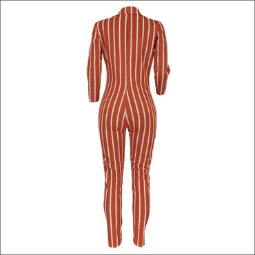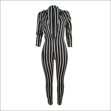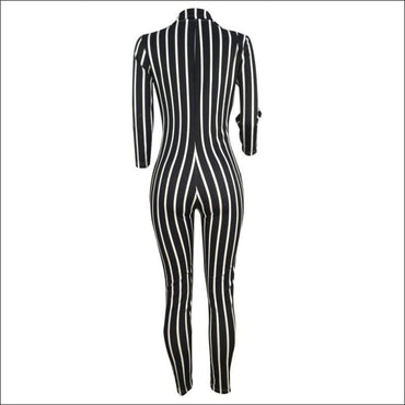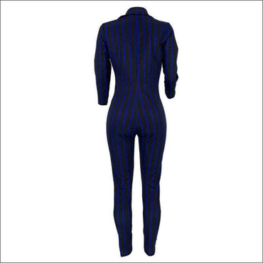 Classic Stripes Print Long-sleeve V Neck Sexy Tight Jumpsuits