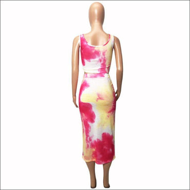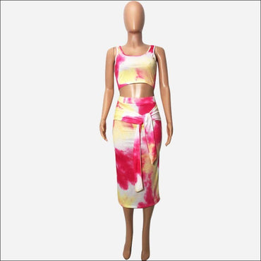 Crop Top Lace-up Tight Skirt Tie Dye Design Set