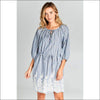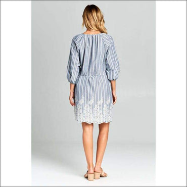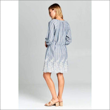 - Style: 3/4 Sleeve Striped Waist Tie Dress With Bottom Embroidery