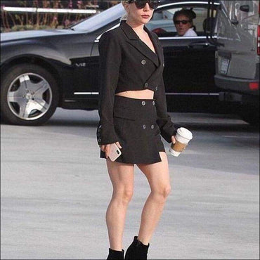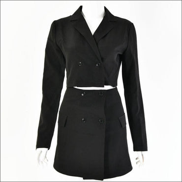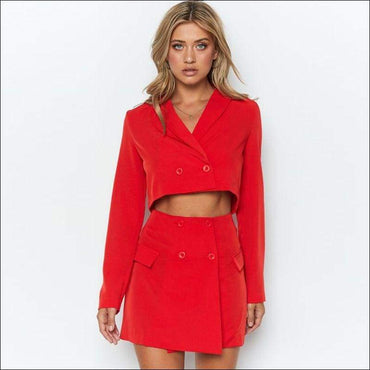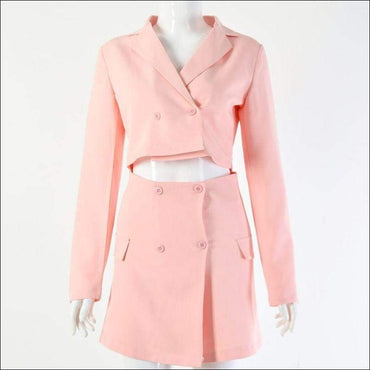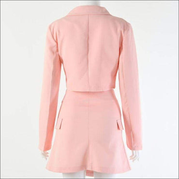 Double-breasted Cropped Blazer Mini Skirt Set