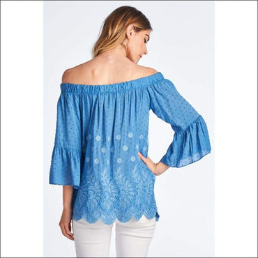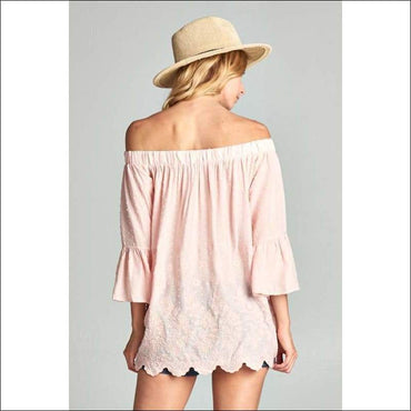 - Style: Embroidered off the shoulder top with bell sleeves