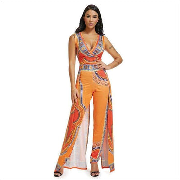 Ethnic Print Sleeveless V Neck Casual Jumpsuits