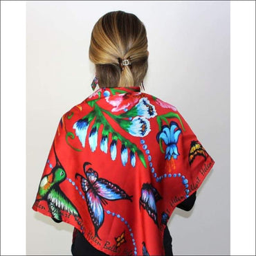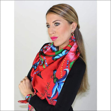 - Silk scarf printed with the original artwork from artist Helen Bellart
