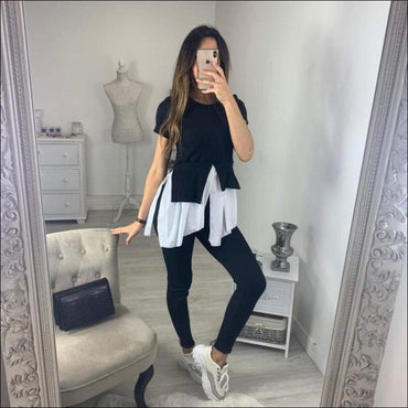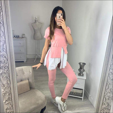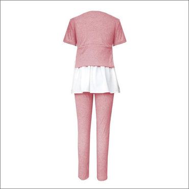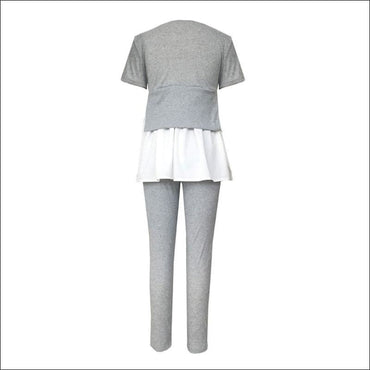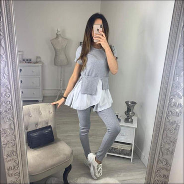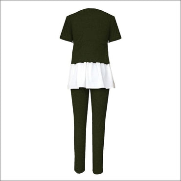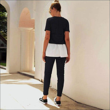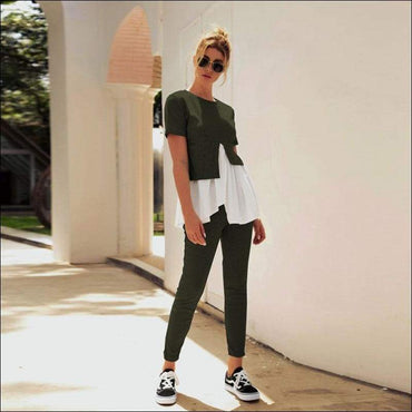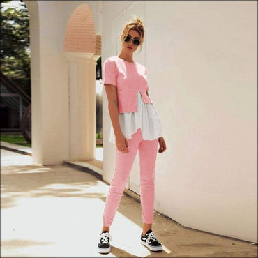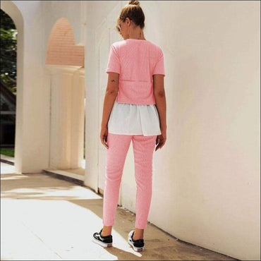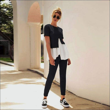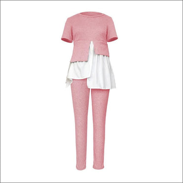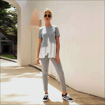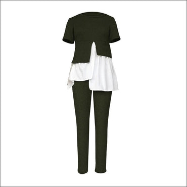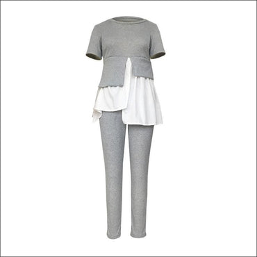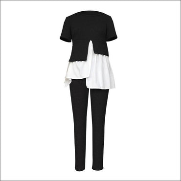 Fashion Round Collar Irregular Patchwork Top And Slim Pants