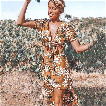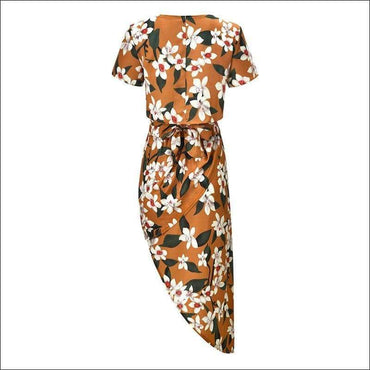 Floral Print Lace-up Crop Top Irregular Hemline Skirt Chiffon Set
