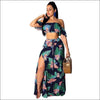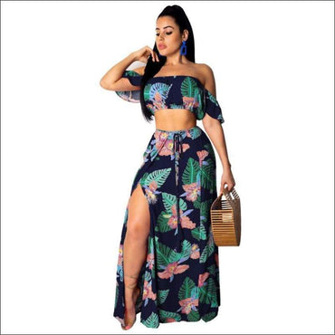 Floral Print Off-the-shoulder Ruffled Crop Top And Lace-up Side-slit Skirt