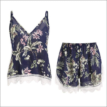 Floral Print V-neck Camisole And Shorts Sleepwear Set
