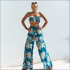 Flower Printed Knotted Crop Top Wide-leg Pants Set