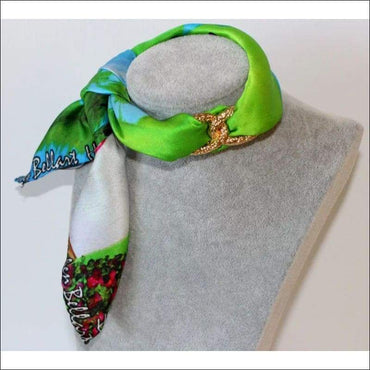 - Silk scarf printed with the original artwork from artist Helen Bellart