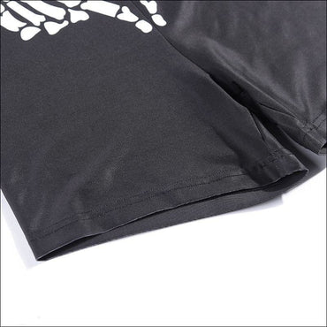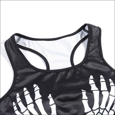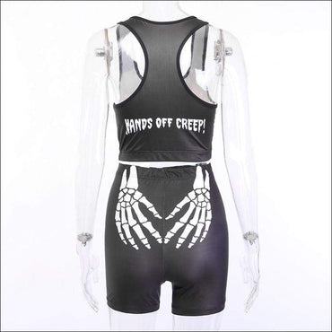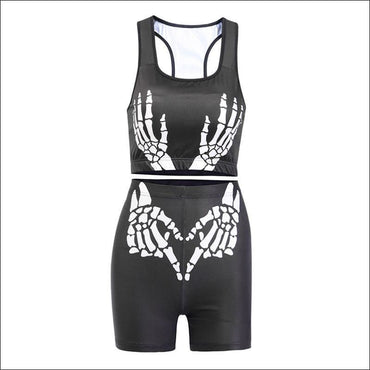 Gothic Style Sleeveless Crop Top Tight Shorts Skull Print Sporty Set
