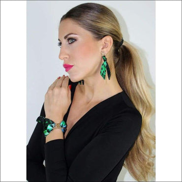 Green Tiger silk tie earring