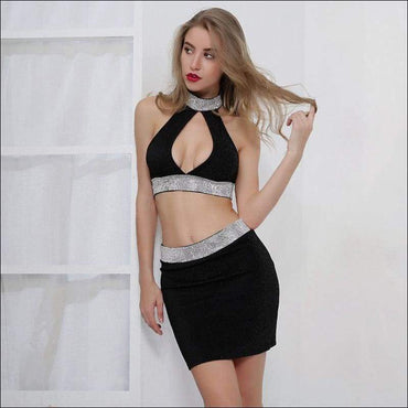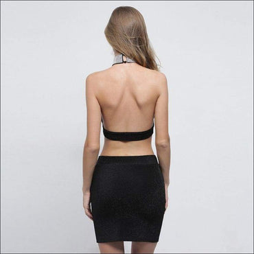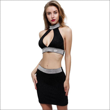 Hollow Sweetheart Design Crop Halter Top And Tight Skirt Set