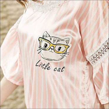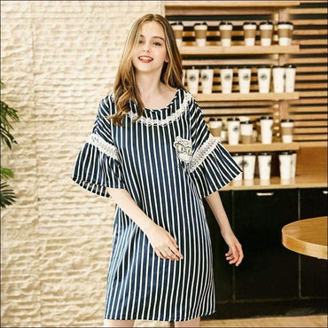Home Wear Casual Stripe Pattern Short Sleeves Nightdress