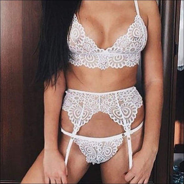 Lace Underwear Bra Set With Garter 3pcs Set