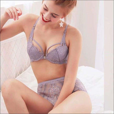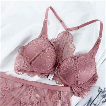 Lace Underwire Push-up Front Closure Bra Brief Set