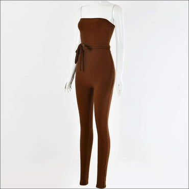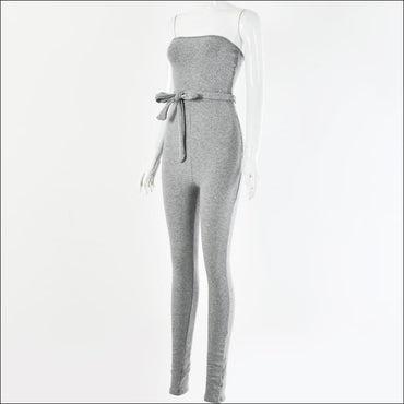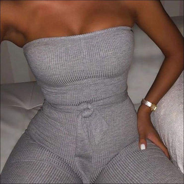 Lace-up Knit Strapless Sleeveless Jumpsuits