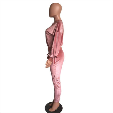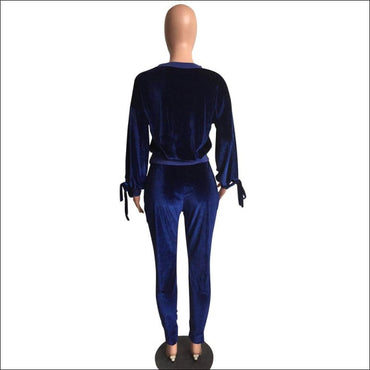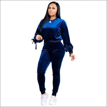 Lace-up Long-sleeve Top And Pants Casual Two Pieces Sets Round Neckline