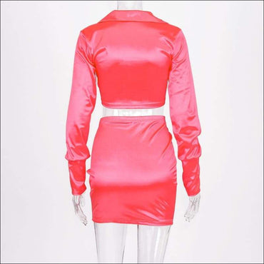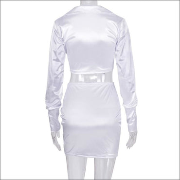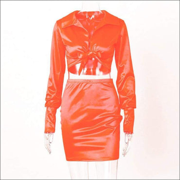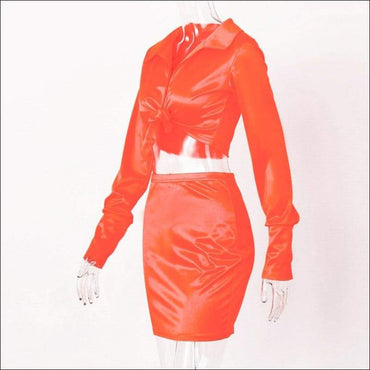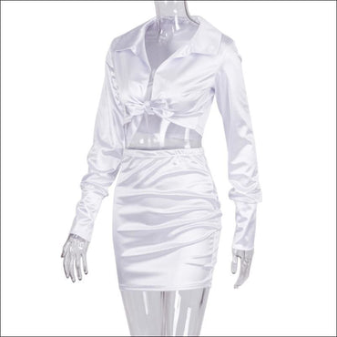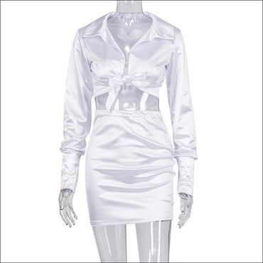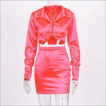 Lapel Knotted Long-sleeve Top And Bodycon Skirt Fashion Two-piece set