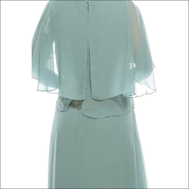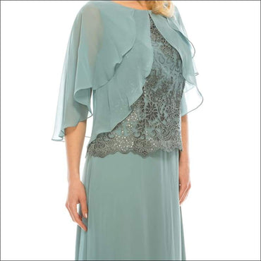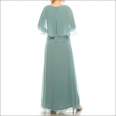 Le Bos Cool Sage Mesh & Chiffon Long Evening Cape Dress