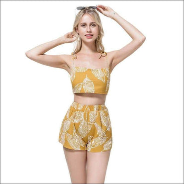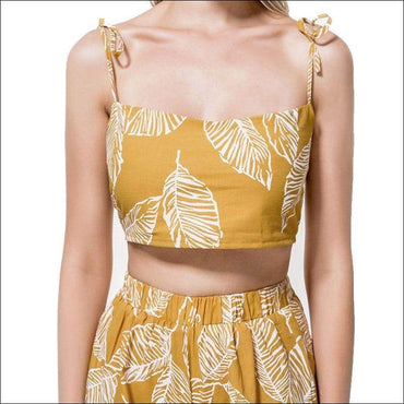 Leaf Print Crop Camisole And Wide Leg Shorts Set