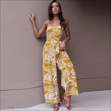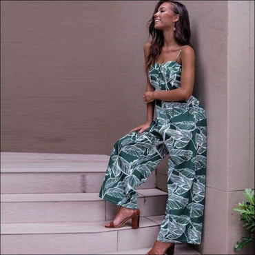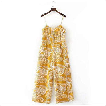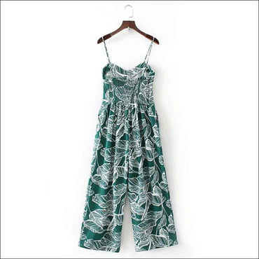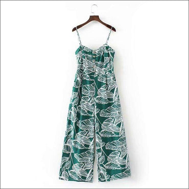 Leaves Printed Sleeveless Loose Jumpsuits