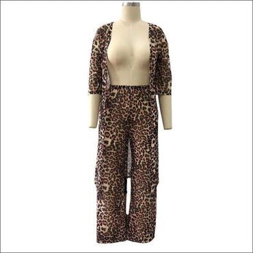 Leopard Print Cover Up Wide Leg Trousers Casual Two-piece Set