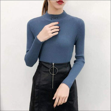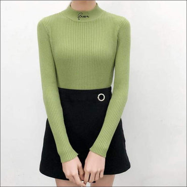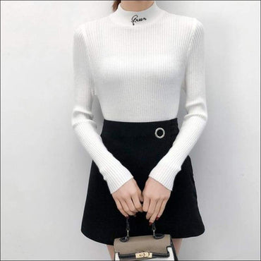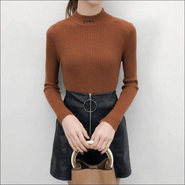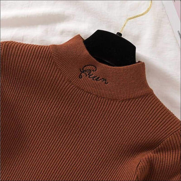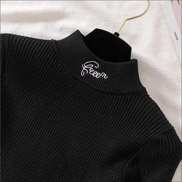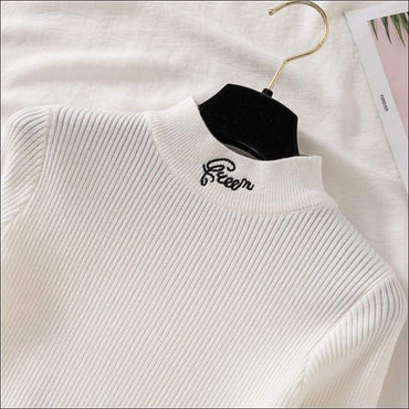 Letter Embroidery Mock Neck Knitwear