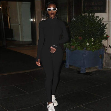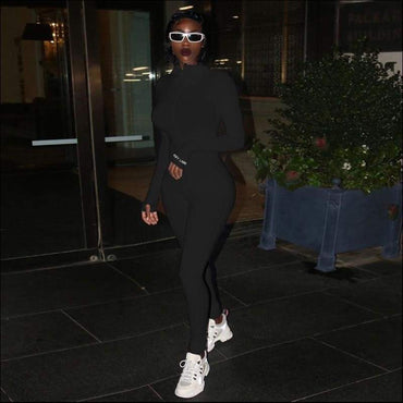 Letter Embroidery Tight Turtleneck Zipper Long-sleeve