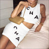 Letter Print Cropped Tank Top Tight Skirt Knitted Two-piece Set