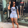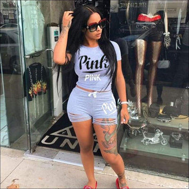 Letter Print Tee And Hollow Shorts Sports Two Pieces Sets
