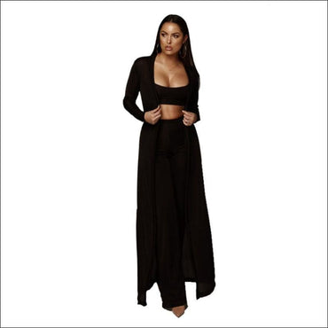 Long-sleeve Cardigan Cropped Camis Pants Three-piece Set
