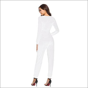Long-sleeve Casual V-neck Jumpsuits