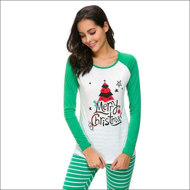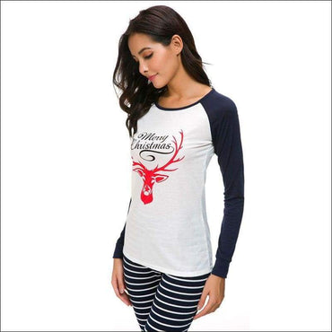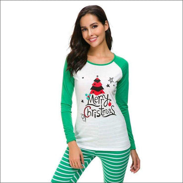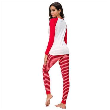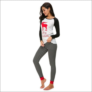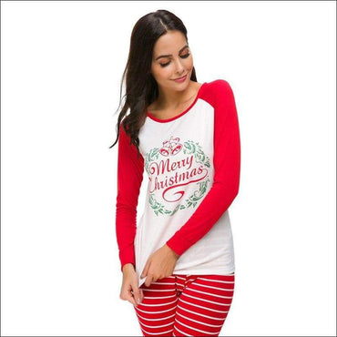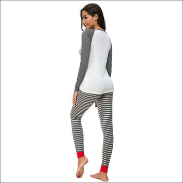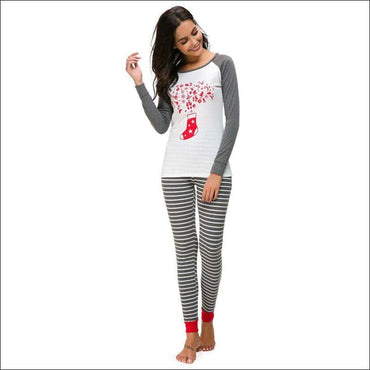 Long-sleeve Christmas Style T-shirt Stripe Print Pencil Pants Women Casual Two-piece Set