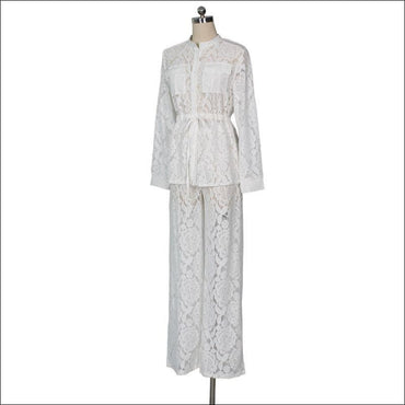 Long-sleeve Lace Blouse Wide Leg Pants Set