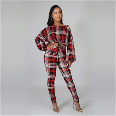 Long-sleeve Lantern Top And Slim Pants Fashion Two Pieces Sets