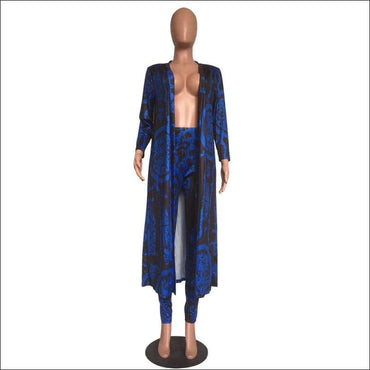Long Sleeve Print Cardigan And Skinny Pants Two-piece Set