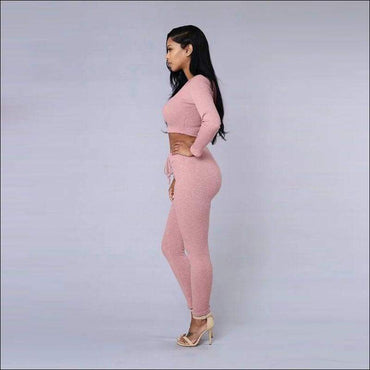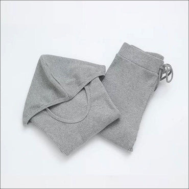 Long-sleeve Rib-knit Pattern Sporty Two-piece Set