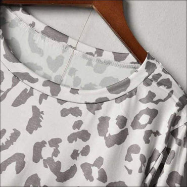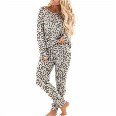 Long-sleeve Top And Pants Leopard Print Leisure Pajamas Set