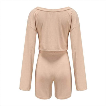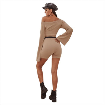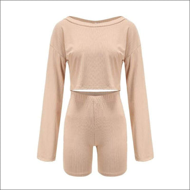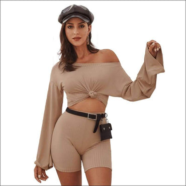 Long-sleeve Top And Slim Shorts Two Pieces Sets