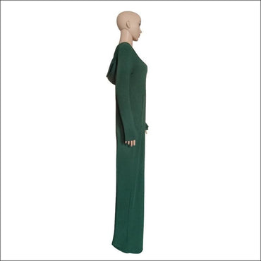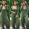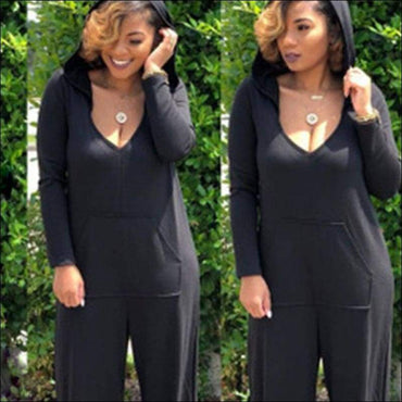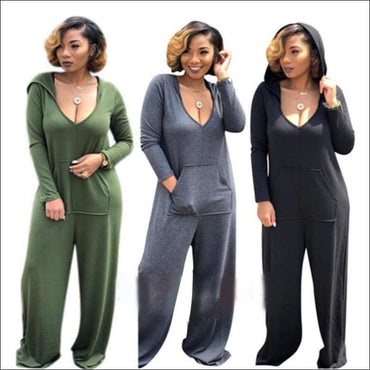 Long-sleeve V-neck Pocket Design Hooded Loose Jumpsuits